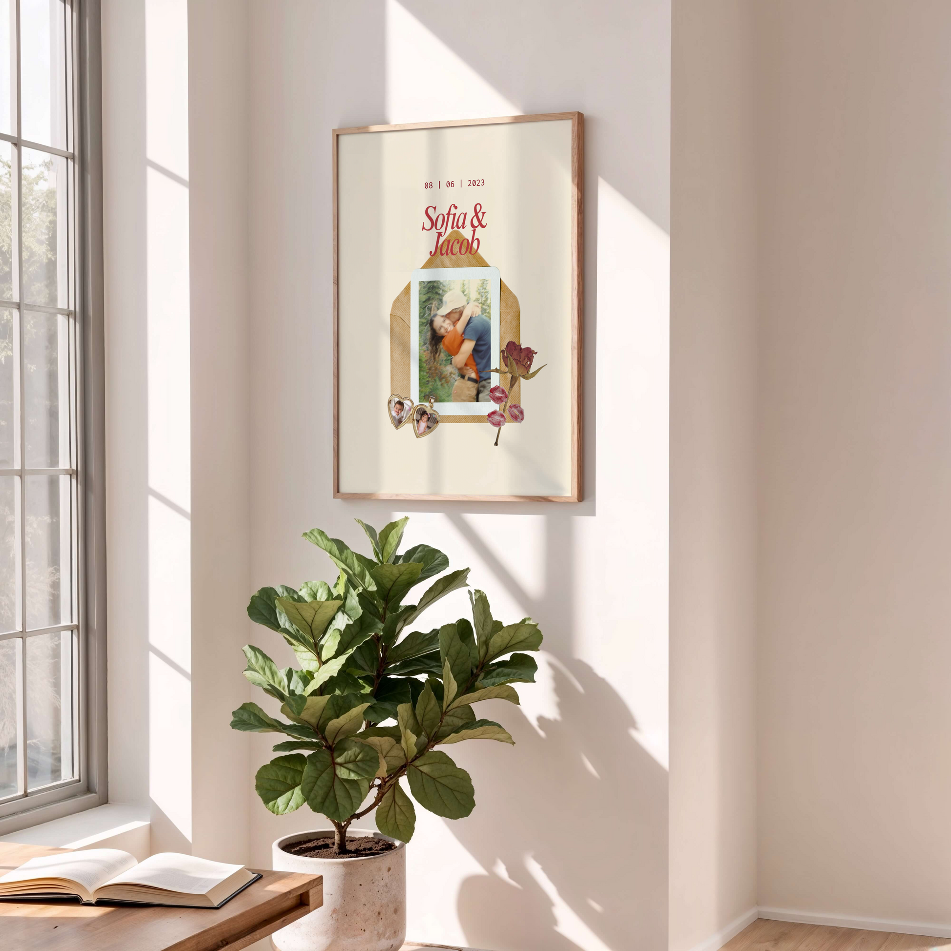 With a minimalist yet vibrant layout, this digital template lets you customize and showcase a special picture, date, and names, making it a meaningful anniversary, birthday, or Valentine’s Day gift.